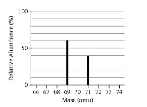 2.The mass spectrum of an average sample of a pure element is shown in the figure above. Which of the following is the identity of the element?