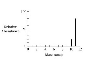 6.Based on the mass spectrum of a sample of boron shown above, how many neutrons are in the most common isotope of boron?