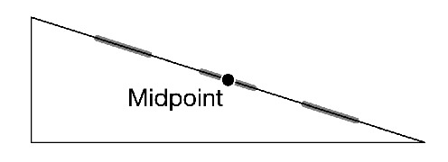 (C) The distance between points just before and just after the midpoint and the time it takes the block to travel between them